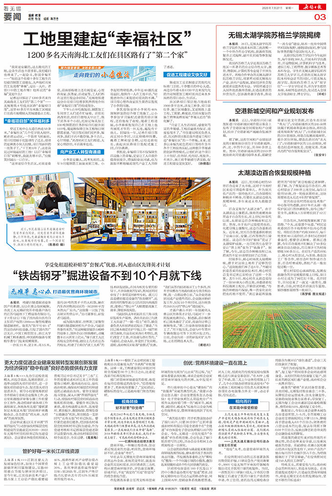 转载自《无锡日报》2020年7月27日第A03版:要闻