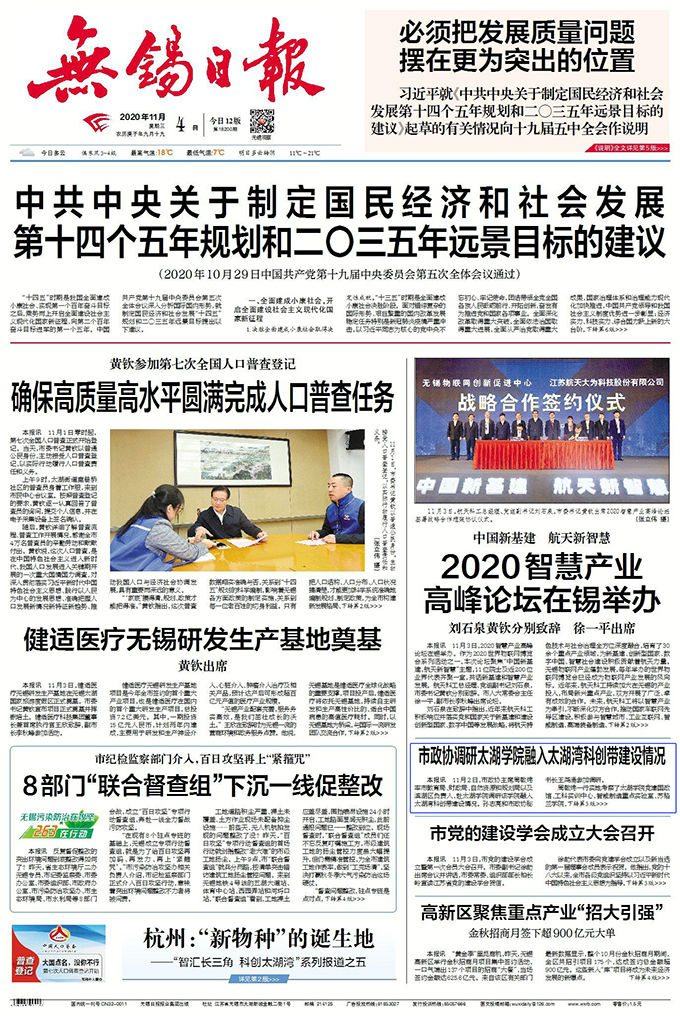 转载自《无锡日报》2020年11月4日第A01版:要闻