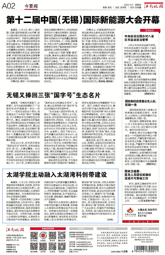 转载自《江南晚报》2020年11月5日第A02版:今要闻