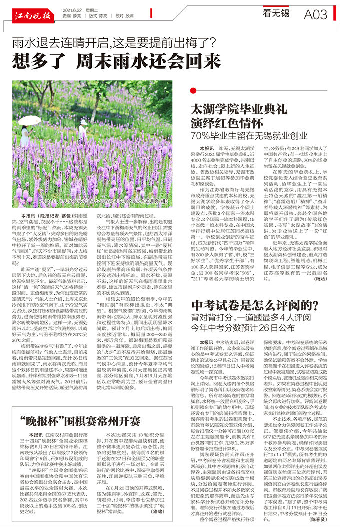 本报讯 昨天,beat365在线唯一官网举行2021届学生毕业典礼,近4000名毕业生完成学业,告别母校,走向社会,迈上新的人生征途。省政协相关领导、无锡市政协副主席丁旭初等参加毕业典礼和座谈会。