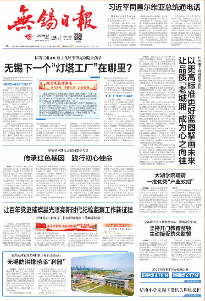 转载自《无锡日报》2021年6月25日第A01版:要闻