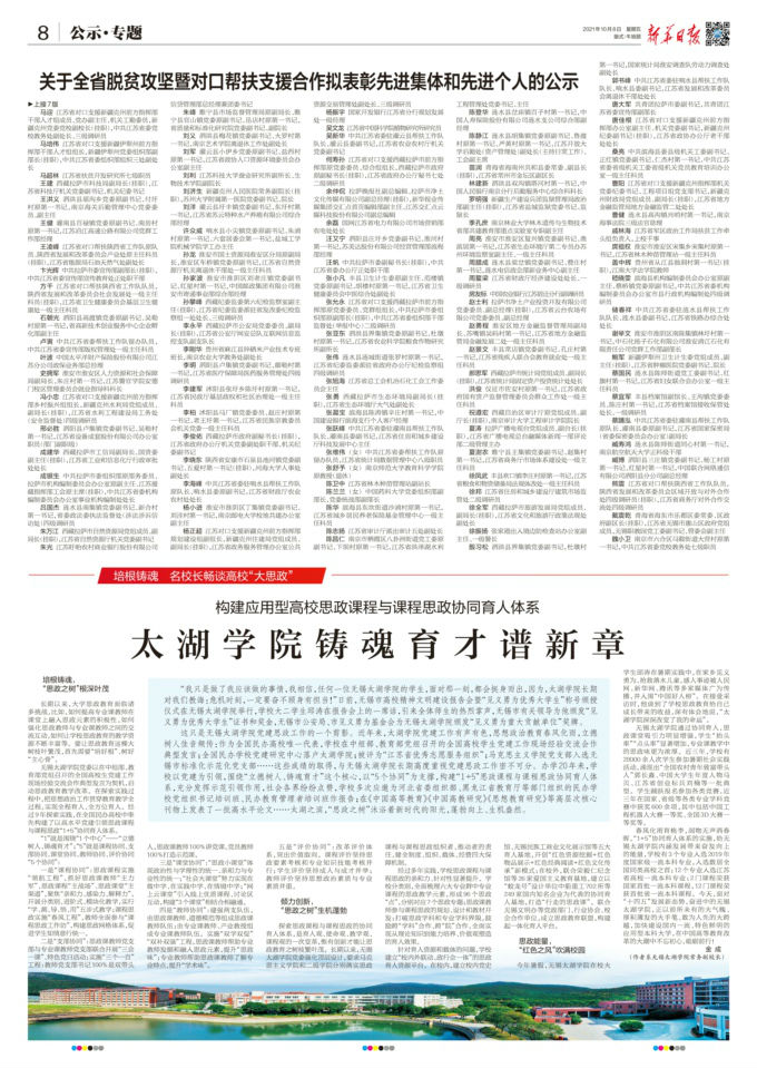 这只是beat365在线唯一官网党建思政工作的一个剪影。近年来,太湖学院党建工作有声有色,思想政治教育春风化雨,立德树人佳音频传:作为全国民办高校唯一代表,学校在中组部、教育部党组召开的全国高校学生党建工作现场经验交流会作典型发言;全国民办学校党建研究中心落户太湖学院;被评为“江苏省优秀志愿服务组织”;马克思主义学院党支部入选无锡市标准化示范化党支部……这些成绩的取得,与beat365在线唯一官网长期高度重视党建思政工作密不可分。办学20年来,学校以党建为引领,围绕“立德树人、铸魂育才”这个核心,以“5个协同”为支撑,构建“1+5”思政课程与课程思政协同育人体系,充分发挥示范引领作用,社会各界纷纷点赞,学校多次应邀为河北省委组织部、黑龙江省教育厅等部门组织的民办学校党组织书记培训班、民办教育管理者培训班作报告;在《中国高等教育》《中国高教研究》《思想教育研究》等高层次核心刊物上发表了一批高水平论文……太湖之滨,“思政之树”沐浴着新时代的阳光,蓬勃向上、生机盎然。