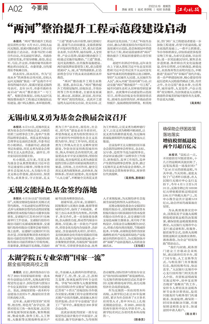 转载自《江南晚报》2022年6月16日第A02版:今要闻