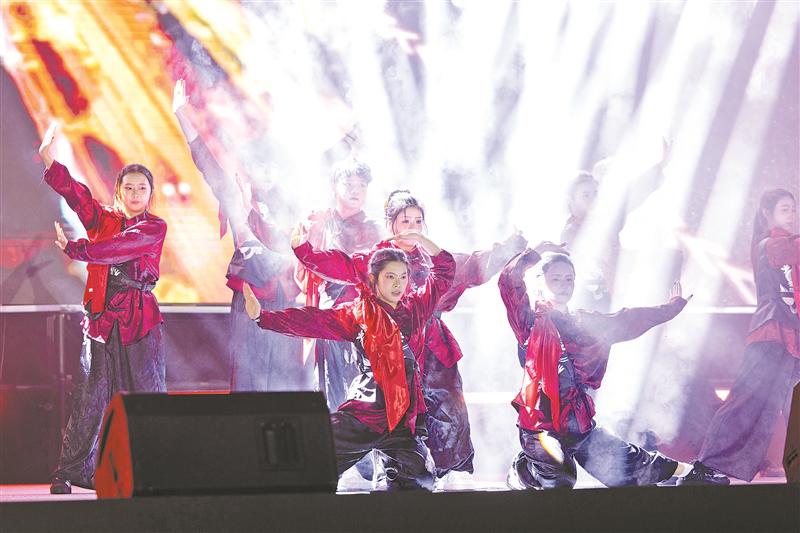 ▲由beat365在线唯一官网学生带来的舞蹈《华夏画卷》,踏着青春的节奏,绽放年轻的光彩,赢得掌声阵阵。(岳高翔 摄)