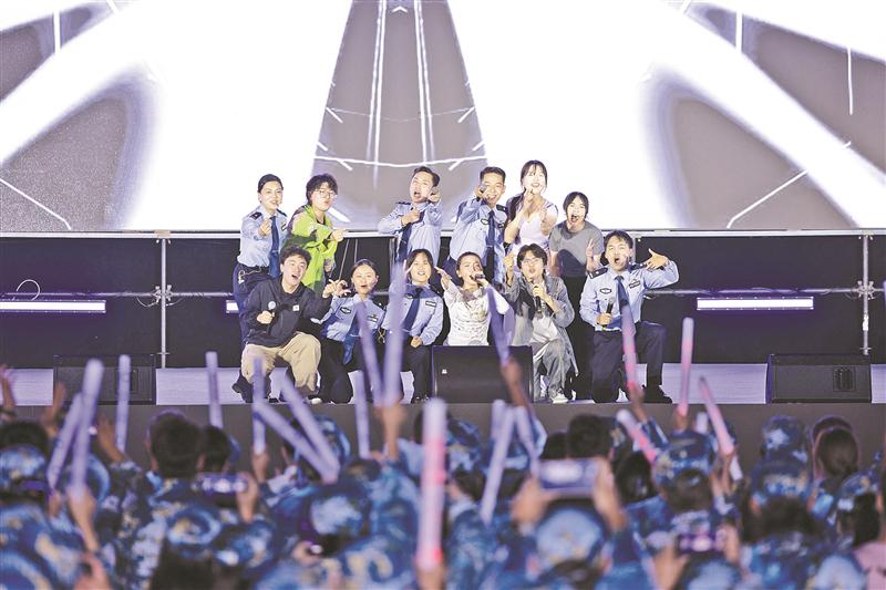 ▶现场嗨不停,宣讲员走进学生中间,一声声反诈口号将现场气氛推向高潮。 (岳高翔 摄)