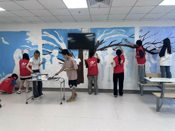5月17日至6月12日,艺术学院学生党支部毅志艺行志愿服务工作室联合艺术学院兰亭书画协会前往无锡市精神卫生中心组织开展“YI彩飞扬,绘梦心墙”艺术学院墙绘主题志愿服务。四十余名YI行志愿者,以缤纷色彩与创意设计,为医院注入艺术活力,用实际行动诠释艺术与公益的深度融合。