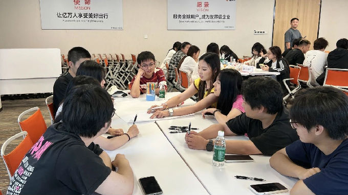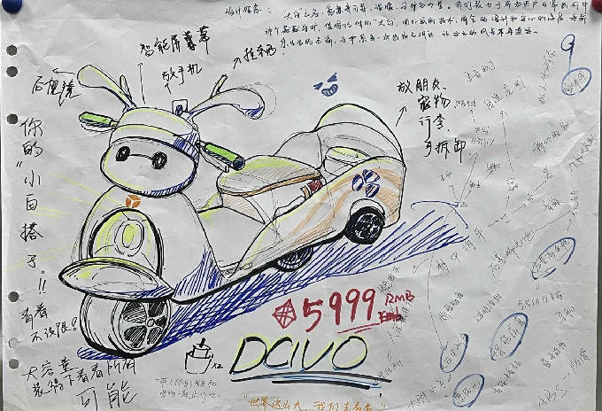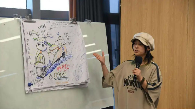 紧接着,我们进行了一场非常有趣且富有挑战性的“产品经理”挑战赛,学生分组围绕“大学生毕业后的第一辆梦中情车”为主题并在白纸上绘制产品构想,每个小组对电动车的设计创意都非常出圈!此环节不仅锻炼了学生的创新能力,也为企业带来了许多新鲜的思考与灵感。挑战赛最后,雅迪无锡制造公司副总经理徐丽英表示期待更多高校学子走进雅迪,与我们一起,为未来出行赋能!