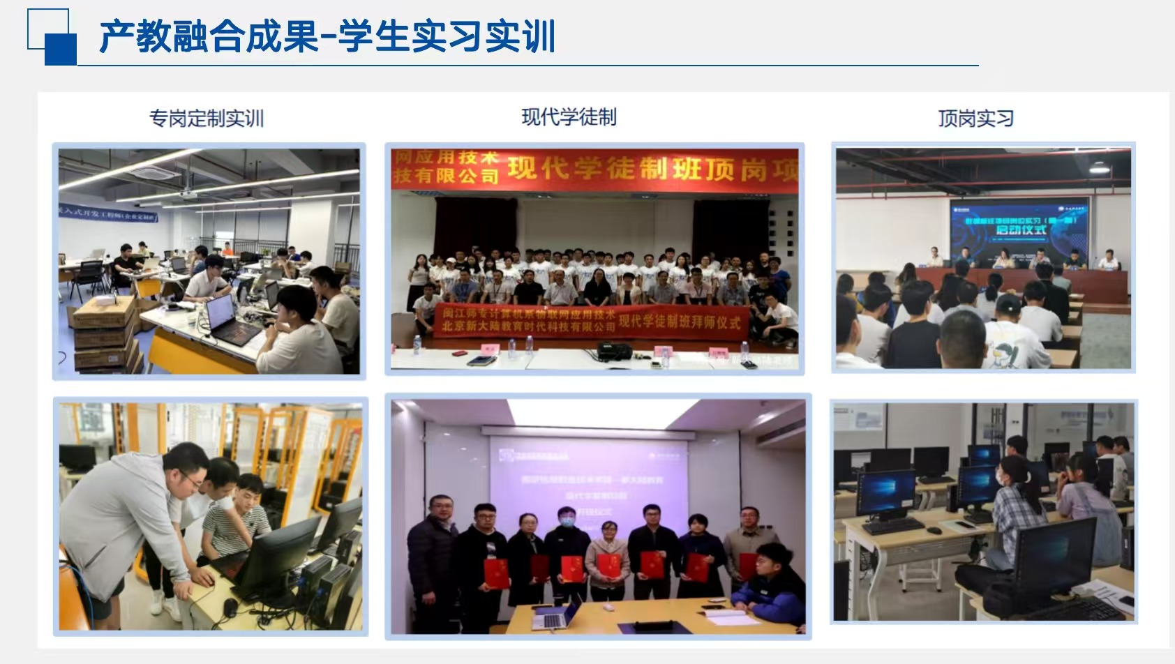 见面会上,新大陆教育集团的代表介绍了集团“从物理世界走向数字世界”的发展战略,概述了其在硬件/软件服务(物理世界)、人事物连接(数字连接)及可视化/智能化(数字世界)等阶段的实践与关键成就(如数字支付、数字公民、数字人民币合作等)。作为本次实习的合作企业,新大陆代表详细说明了其为入选学生提供的实习配套条件,包括:专业的实训环境,以及便利的住宿环境等等。