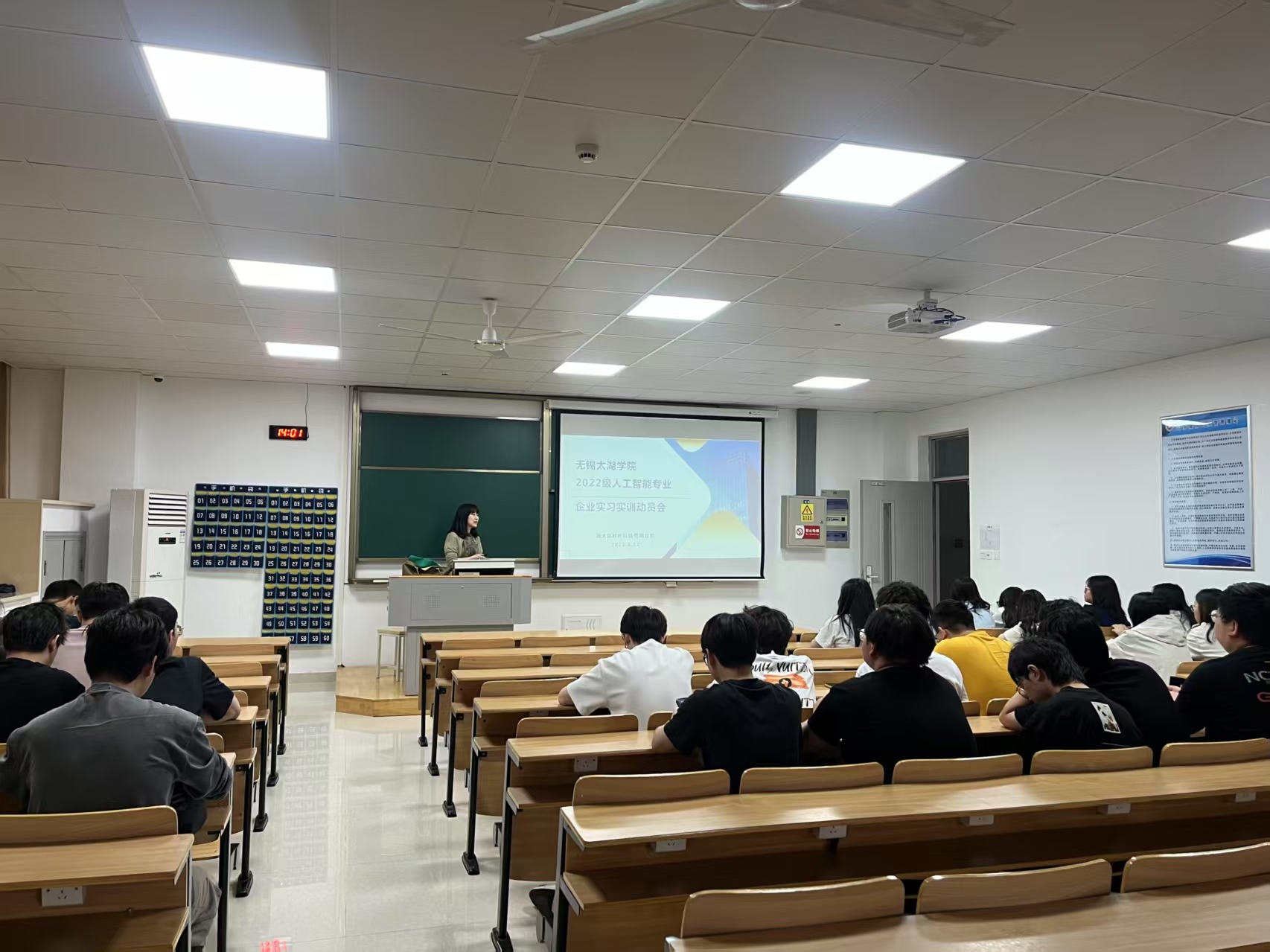 2025年6月12日下午2点,beat365在线唯一官网物联网工程学院人工智能专业2022级全体学生在工科实验大楼A401教室,参加了与新大陆教育集团的教学实习见面会。此次见面会旨在帮助学生了解新大陆提供的实习岗位及相关安排,为即将开始、为期四个月(16周)的集中教学实习做好信息对接。