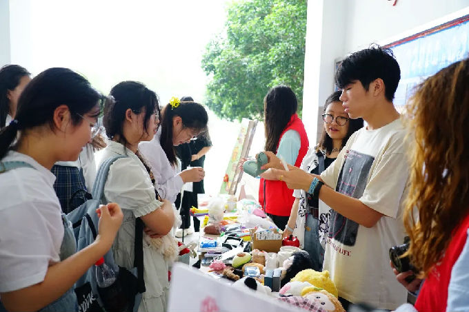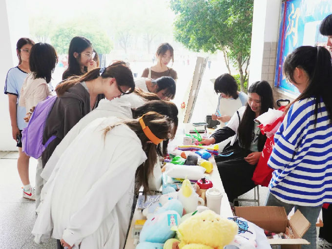 在活动前期筹备阶段,志愿者们采用定点回收与流动征集相结合的方式,在全校范围内有序收集塑料瓶、奶茶袋、快递纸箱等可再造资源。并认真记录同学们的捐赠物品,细致地对其进行分拣、筛选和整理。来现场的同学们以低价购买旧物,用实际行动为公益助力。此次活动所获盈利将全部用于公益性捐赠,实现物品价值的延续,让废弃旧物重新发挥作用。