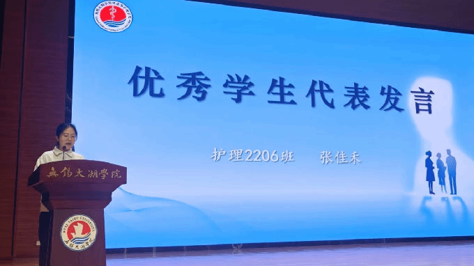 优秀学生代表张佳禾同学上台发言,她表示:“显微镜下的生命密码、病床前的临床实践,都是对生命的郑重承诺。”引用希波克拉底箴言,呼吁同窗以专业守护健康、以温情抚慰病患。