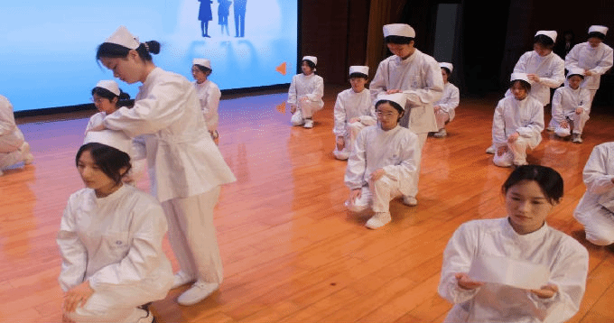 活动高潮的授帽仪式上,学子们躬身接受前辈授予的护士帽。洁白的燕尾帽象征着责任与传承,灯光映照着新一代护理人的坚定目光。这一传统仪式不仅传递了护理精神的薪火,更彰显了学院“专业为本、人文为魂”的育人理念。