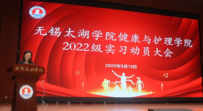 大会由健康与护理学院临床护理系主任唐凤老师主持,特邀无锡市人民医院护理部副主任曹晓东老师出席会议,健康与护理学院副院长宋绍征、健康与护理学院党总支副书记胡宇、健康与护理学院科研副院长王一川、健康与护理学院院长助理杨小仙、健康与护理学院康复治疗学系副主任姚瑶、22级辅导员及全体护理学和康复治疗学专业学生共同参会。