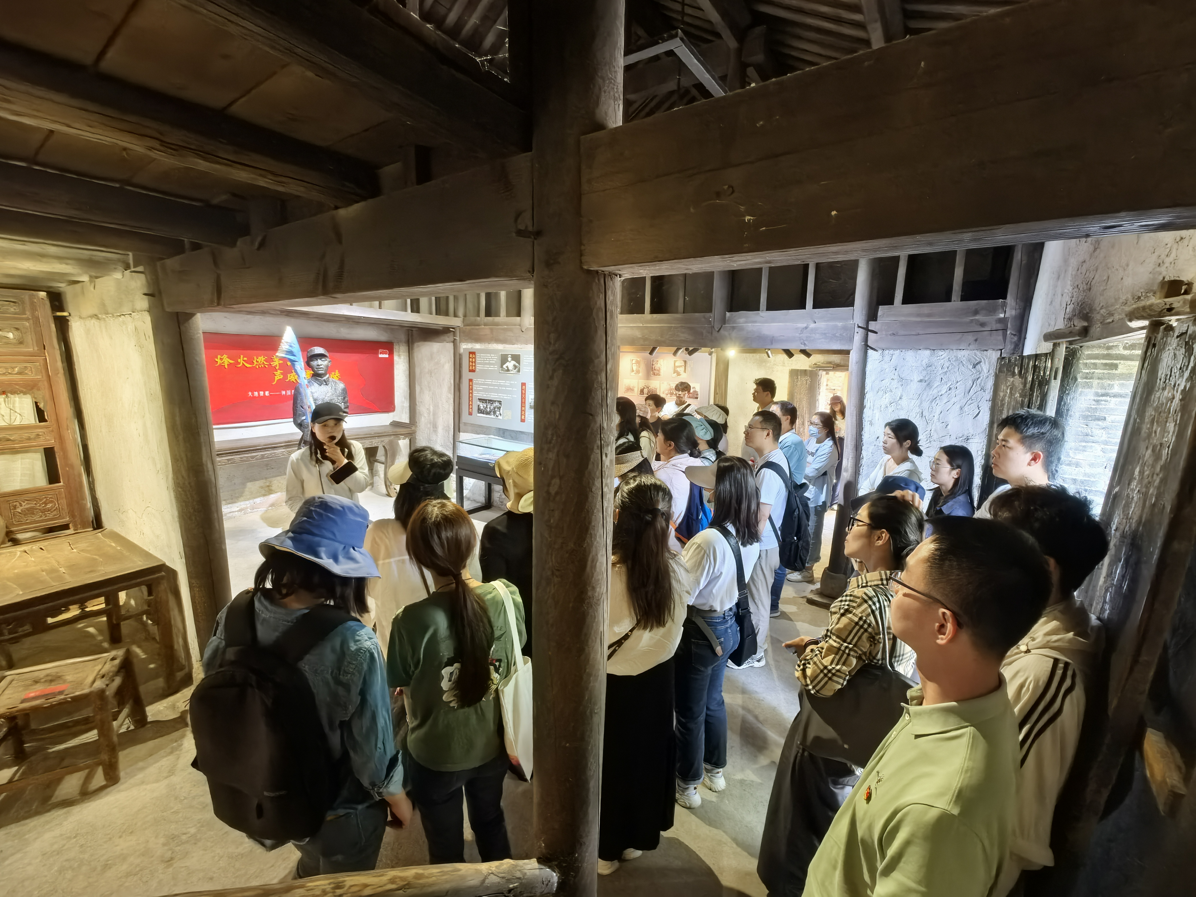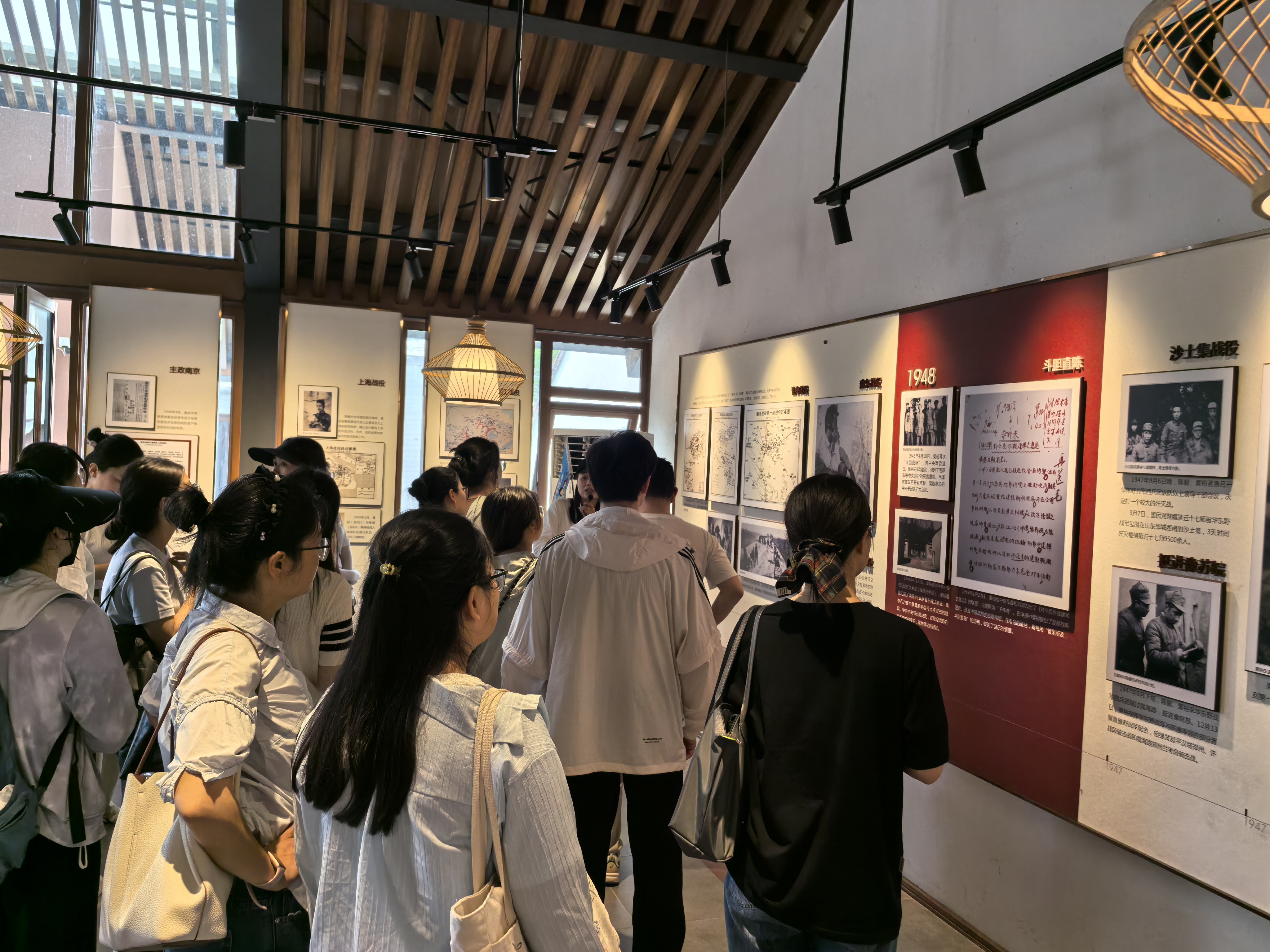 红色李巷位于溧水区白马镇,是抗日战争时期苏南党政军首脑机关驻地,被史学界称为“苏南小延安”。活动中,党员们跟随讲解员参观了李氏宗祠、陈毅旧居、李坚真旧居、地下交通总站等革命遗址,通过珍贵文物、历史图片和生动讲解,深入了解了新四军在苏南地区开展抗日斗争的光辉历程。在李氏宗祠内,党员们驻足观看《苏南施政纲领》等历史文献,深刻感受革命先辈在艰苦卓绝的环境中制定政策、指挥作战的智慧与担当。
