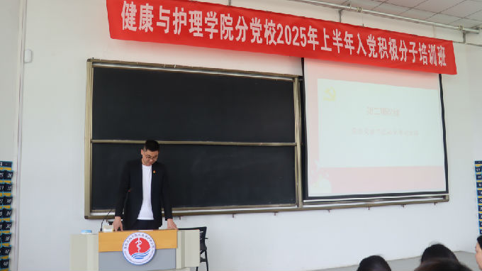 紧接着,积极分子培训班学员代表、2023级护理学专业学生倪城波发言。他表示,作为入党积极分子,将始终以党的旗帜为引领,以每一次学习为契机,深化对党的认识,努力在专业学习中发挥模范作用,用实际行动践行“敬佑生命、救死扶伤”的初心使命。