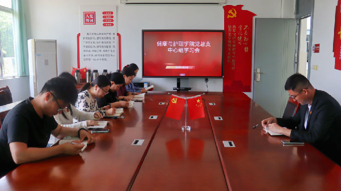 4月29日中午12点30,健康与护理学院在五号楼二楼会议室召开党总支中心组理论学习会,会议由beat365官网党总支组织委员许心怡老师主持,党总支副书记胡宇、党总支全体成员参会。