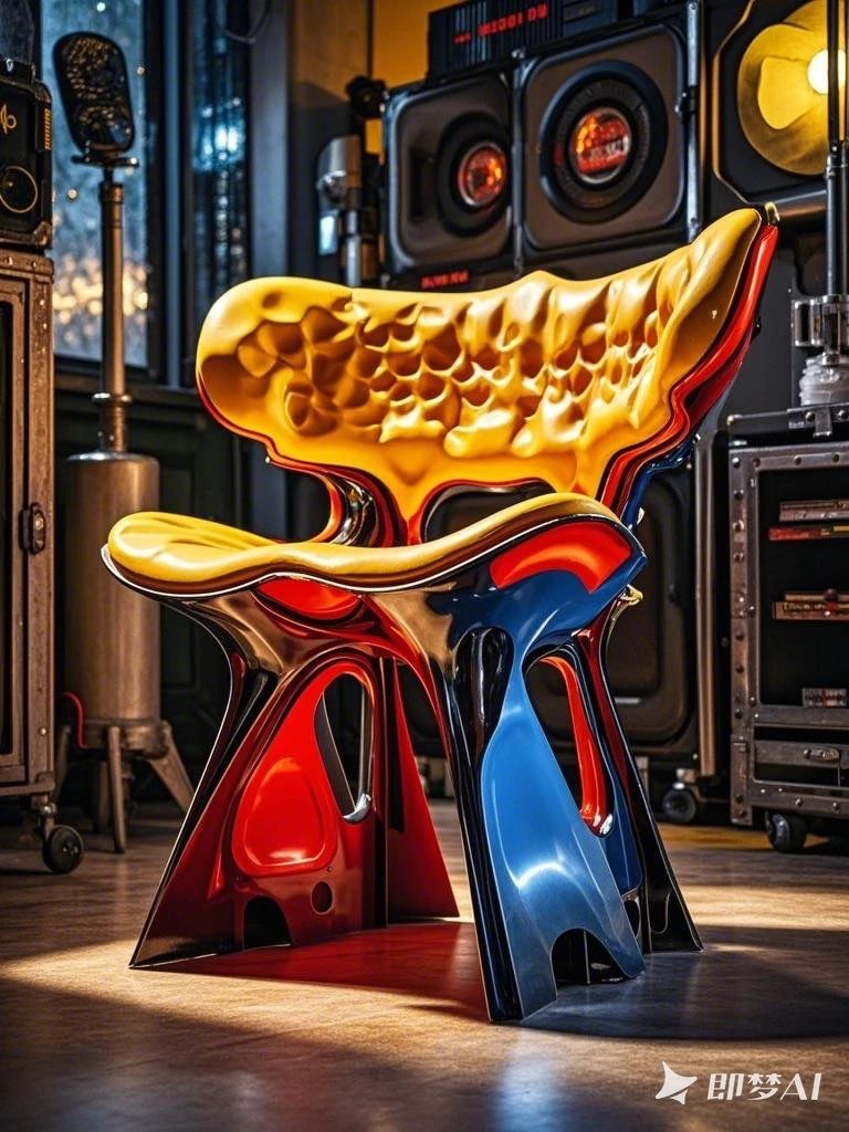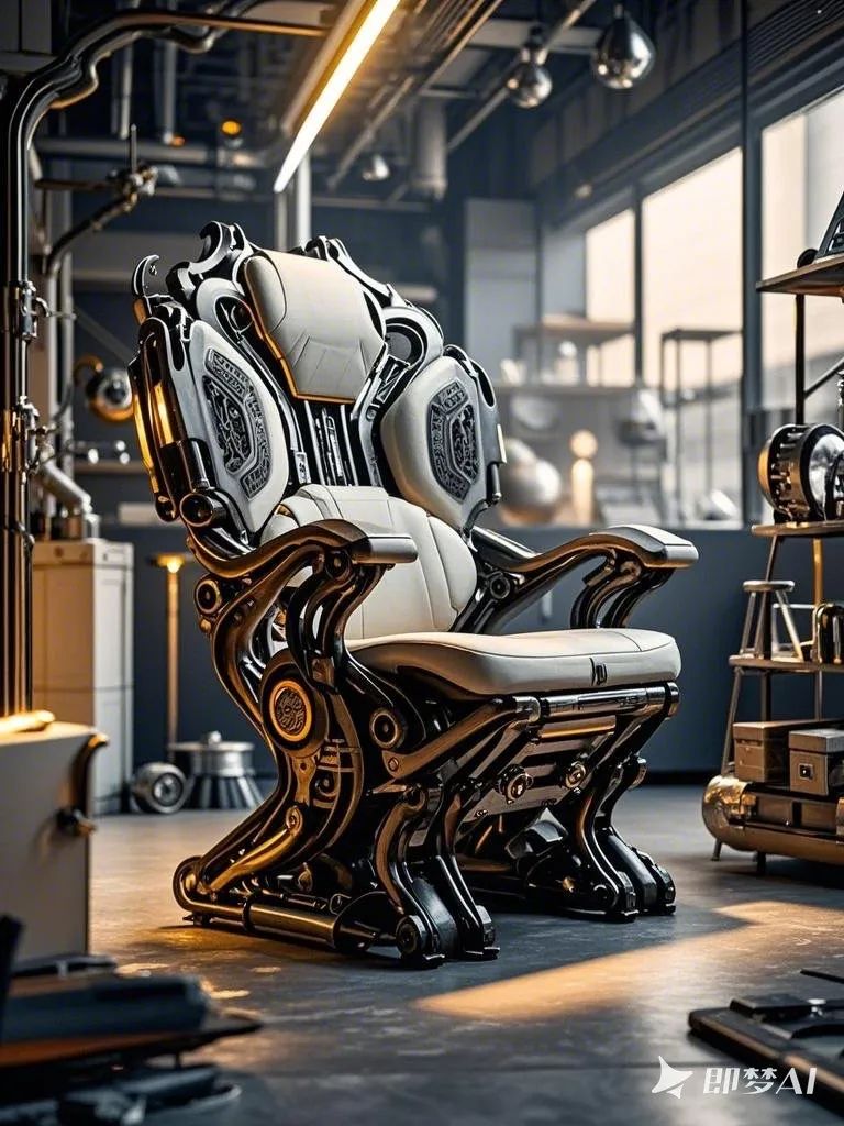 设计说明:该座椅由即梦AI生成,采用独特的造型设计与撞色拼接,呈现出强烈的视觉冲击力和艺术感,不仅满足了功能性需求,还彰显了个性。椅背可展开成可调节的翼状支撑,配合贴合脊椎的仿生曲线设计。