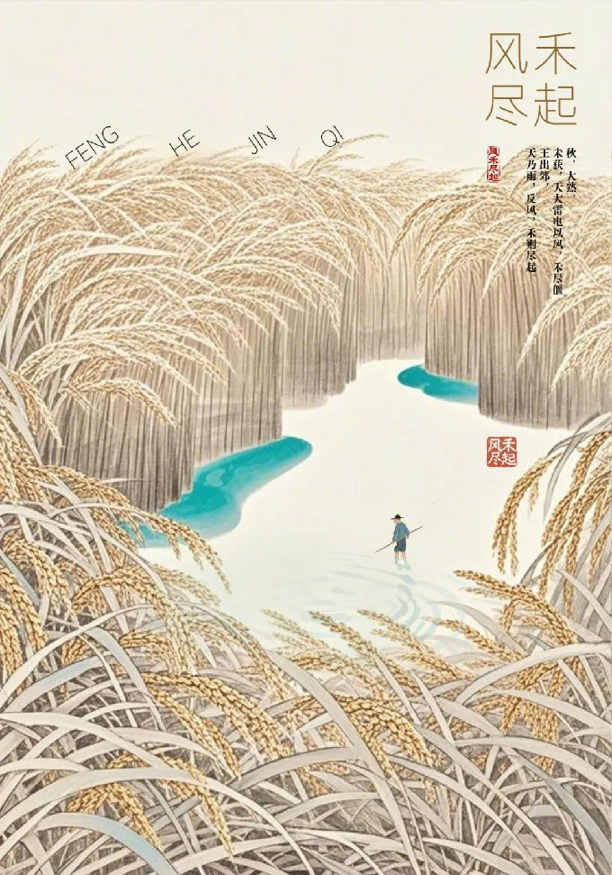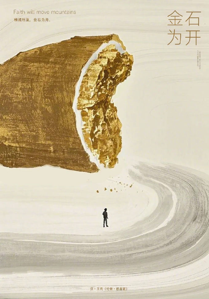 设计说明:这组以 “风禾尽起”“金石为开”“时和岁稔” 为主题的系列成语海报作品,创作灵感源于即梦 AI 生成的国风插画,如画中金黄稻禾、裂开金石等元素。作者在此基础上二次修改,融入相映成趣的人物,使色彩更饱满。文字结合典故,古朴大气,兼具视觉美感与思想深度,为观者留出思考空间。