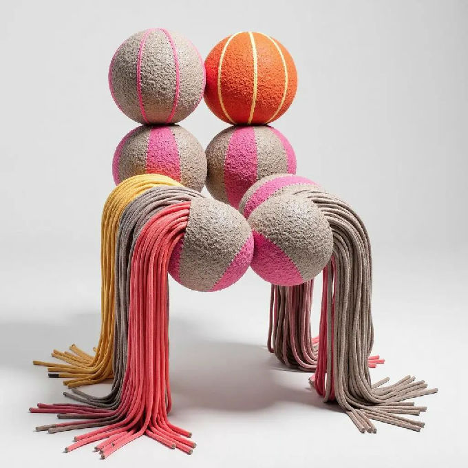 作品名称:红蓝钢管椅、毛线球球椅