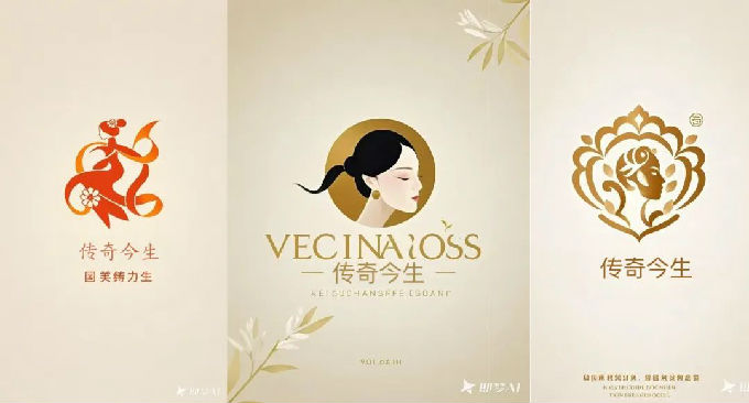 设计说明:即梦AI软件打造的“传奇今生”品牌logo,主要面向女性消费者。品牌结合女性力量和东方美学,追求自信优雅和自然美。淡金渐变配色体现了品牌天然成分的理念,传达纯净滋养的护肤理念。品牌名“VECINAiOSS”展现了其创新和国际视野。