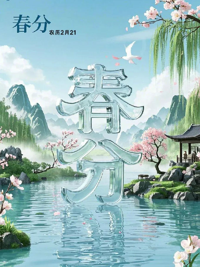 设计说明:liblibai模型 ReVAnimated_v12,lora: 大自然的鬼匠神工_v1.0、SHMILY镂金错彩_v1.0。在春分主题的海报设计,聚焦于自然风光、传统节庆以及气候特色,挑选出富有象征意义的元素,构建出超现实主义的自然景观。