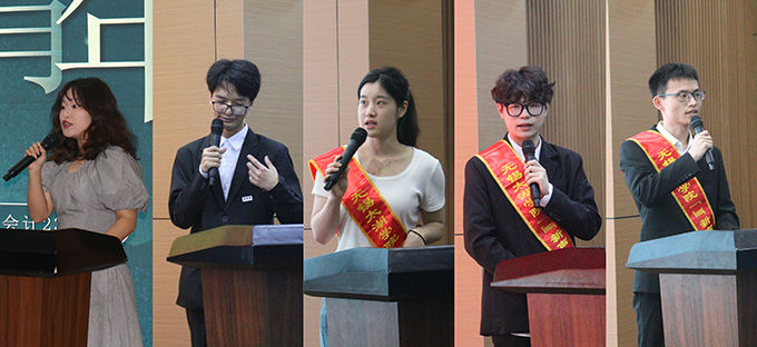 接着,会计2202班李宜锦同学分享了自身的学习经验与志愿经历,她提出制定目标的重要性,也勉励同学们可以把握好当下,脚踏实地走好每一步,发现自身不足并积极改进;供应链2201班王天祥同学从各个维度出发讲述自己的“破圈”成长之路,并鼓励同学们作为新时代青年要以专业筑基,突破自我,实现“破圈”;智造2201班张苏坡同学从学习和实践等多个方面,分享自己实用的学习方法和宝贵的成长心得,使在座的同学们受益匪浅。