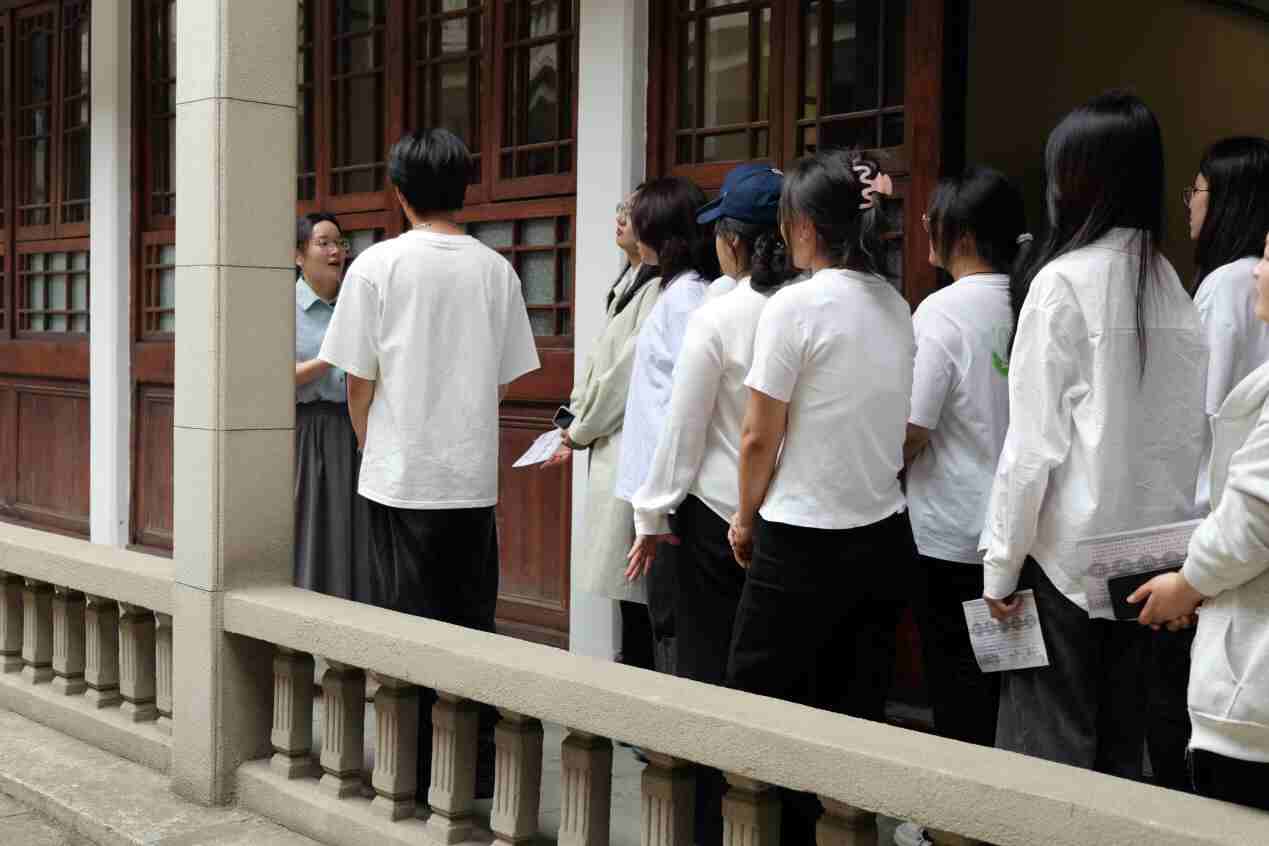 参观完主展厅,同学们来到了荣氏故居 —— 转盘楼。这座承载着家族生活记忆的建筑,不仅以独特的中西合璧风格展现时代特色,更通过书房中摆放的典籍、账房里的算盘等物件,折射出荣氏家族 “勤俭立身、诚信经商” 的持家之道。故居内陈列的《荣氏家书》手稿,字里行间叮嘱晚辈 “勿以善小而不为,勿以利小而忘义”让同学们直观感受到家风对个人品格塑造的深远影响。