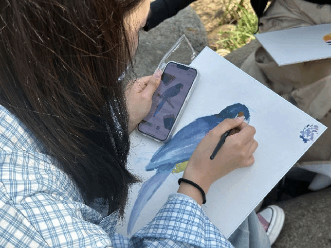 当天的签约活动标志着双方合作的正式启动。活动现场,艺术专业的学生们深入无锡动物园孔雀溪畔,展开写生活动,捕捉园区内鸟类的生动形象。孔雀的华丽羽毛、天鹅的优雅身姿、仙鹤的灵动舞步,纷纷定格在同学们的画纸上,展现了他们对自然美的独特理解与艺术创作能力。