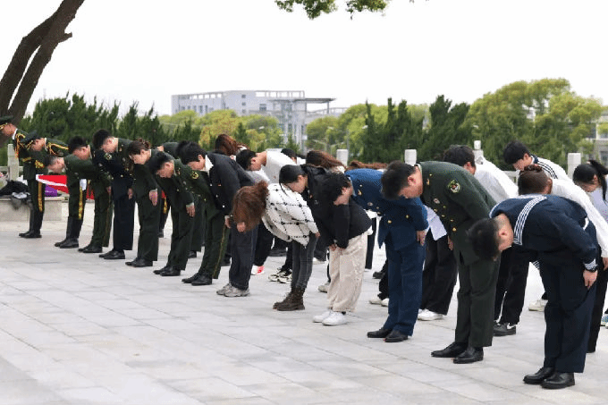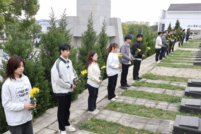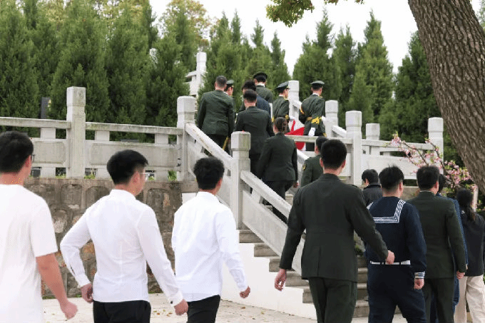 缓步走向烈士纪念碑,向革命烈士行三鞠躬礼,行默哀礼。在庄严肃穆的氛围中,大家共同追忆先烈们为民族解放、国家富强作出的伟大牺牲。退役大学生俱乐部的退伍军人代表正步走向烈士纪念碑,献上花圈,表达对革命先烈的追思与缅怀之情。仪式结束后,全体人员绕陵一周,瞻仰烈士墓群。墓碑上镌刻的姓名与生平,无声诉说着烽火岁月中的赤胆忠心。