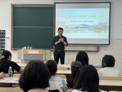 4月10日下午,beat365在线唯一官网商学院直播电商实训基地第一期短视频培训班在商科楼B104隆重举行,这标志着学院在电商综合人才培养领域迈出重要一步,旨在推动产学深度融合,提升教育实效性,同时培养复合型人才,增强大学生就业竞争力,为商学院电商实训基地短视频运营板块奠定人才基础。