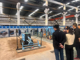 企业方重点介绍了中亿丰“建造-制造-智造”三造融合的发展理念,展示了涵盖智能设计、智能生产、智能施工、智慧运维的全链建设成果。在未来工厂,智能升降机、工地运输机器人等建筑机器人高效运转的场景令人瞩目;智能建筑产线上,自动化设备与数字化系统协同作业,充分展现了“人机共建”的新施工模式。学院领导对企业自主研发的BIM数字一体化平台、建筑机器人应用场景等表现出浓厚兴趣,现场交流气氛热烈。