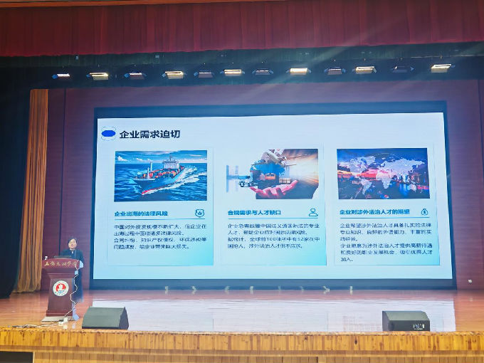 讲座伊始,张丽女士以全球化浪潮和“一带一路”倡议为背景,系统阐释了涉外法治的定义与核心领域。她指出,随着中国深度参与全球治理,涉外法治人才在跨境争议解决、国际规则制定、ESG(环境、社会与公司治理)合规等领域需求激增,已成为国家战略发展的紧缺资源。