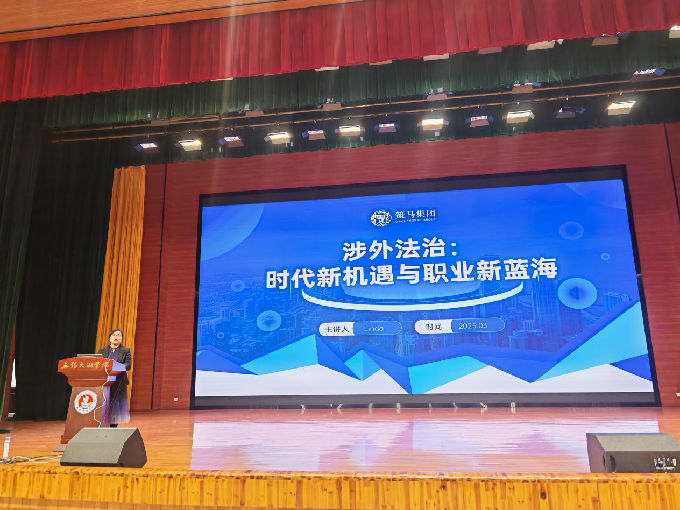 为深化法学专业学生对涉外法治领域的认知,拓宽国际化职业视野,2025年3月24日,文法学院特邀策马集团董事、副总裁张丽女士在工科楼报告厅作题为《涉外法治:时代新机遇与职业新蓝海》的专题讲座。本次讲座吸引了文法学院法律专业百余名师生参与,现场座无虚席,反响热烈。会议由法学系主任王艳华主持。