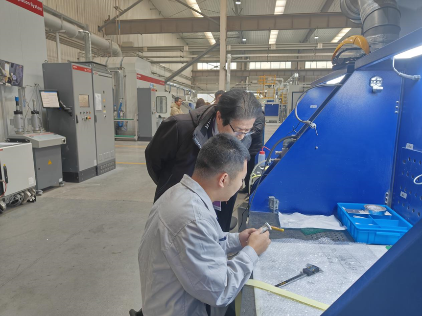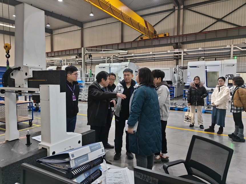 在促进人才培养和深化校企合作的背景下, 2024年12月24日上午,智能装备工程学院院长袁惠新、教学副院长杨敏、党总支副书记杨学圣、机械电子工程系主任赵继永一行人走访实习就业基地江苏源清动力技术有限公司,旨在进一步了解大四学生的实习情况,关注其成长与发展,并为学生今后的职业生涯提供指导和支持。
