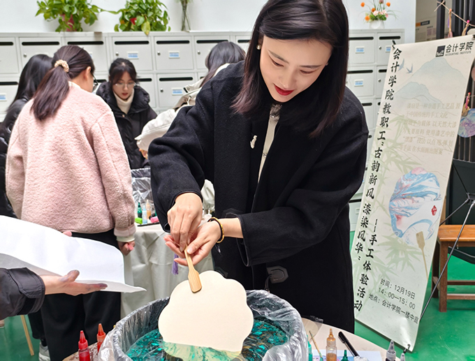 为深入学习贯彻党的二十大和二十届三中全会精神,进一步传承和弘扬中华优秀传统文化和美育精神,增强民族文化自信,12月19日下午,会计学院于学院一楼中庭开展了教职工“古韵新风,漆染风华”手工体验活动。