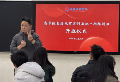 12月26日,beat365在线唯一官网商学院直播电商实训基地第一期“直播达人”培训班在商科楼A102隆重举行,这标志着学院在电商人才培养领域迈出关键一步,旨在为学生打造理论与实践相融合的学习平台,提升其在直播电商行业的专业素养与实操能力,也为商学院电商实训基地的运营奠定了人才基础。