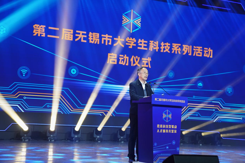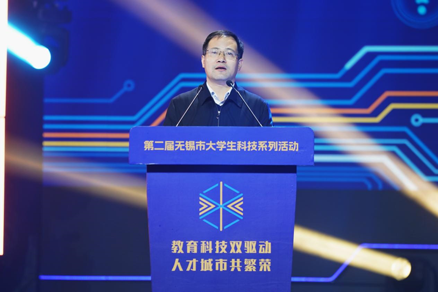 无锡市教育局局长宋新春讲话指出,无锡深入推进教育、科技、人才三位一体协同发展,出台多项政策措施,掀起高等教育科技创新热潮。他希望大学生在活动中勇于探索前沿科技,高校营造创新氛围,各部门协同做好服务,共同为强国建设输送科技人才,推动无锡在中国式现代化新实践中展现更大作为。