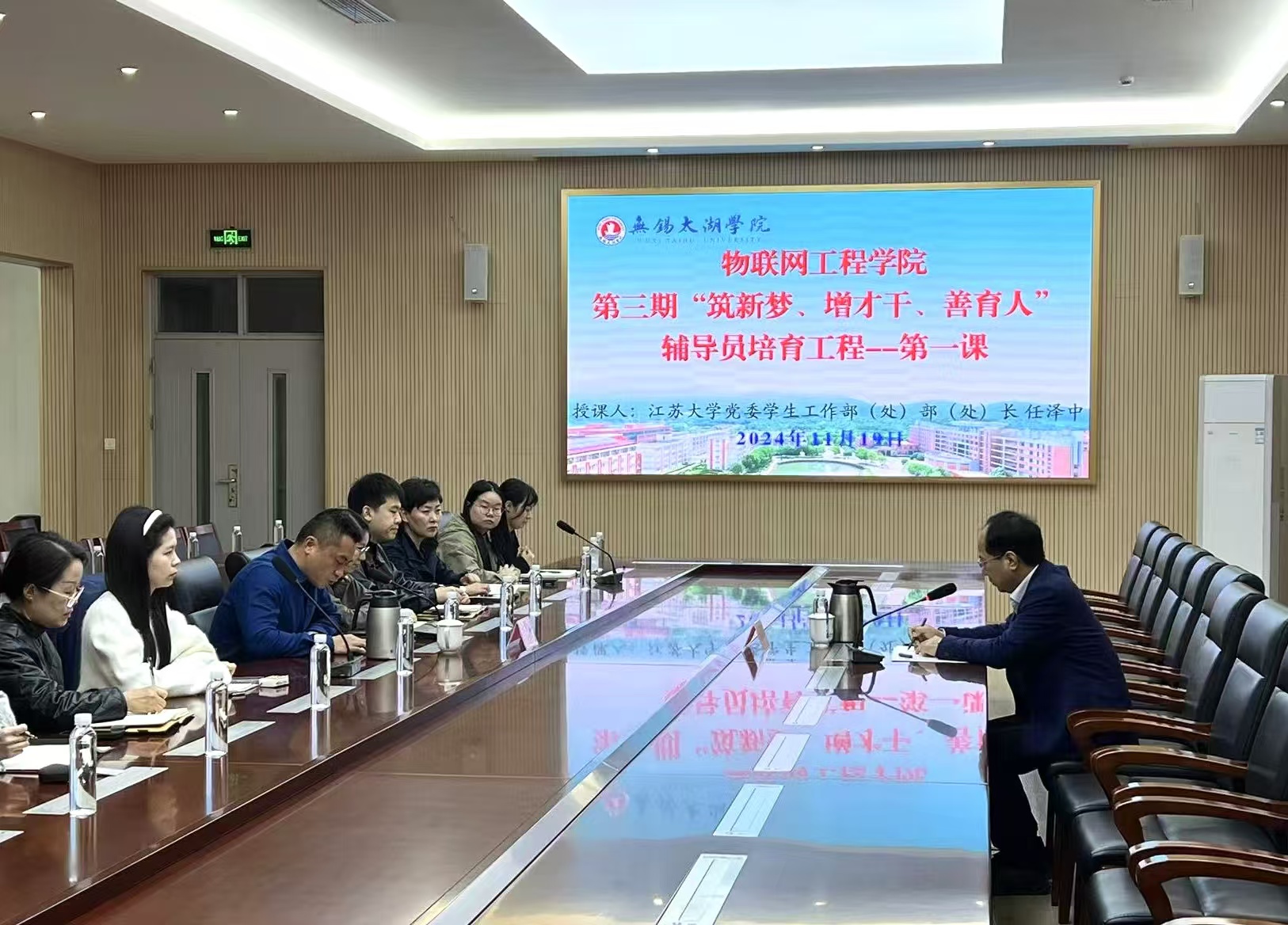 为进一步提升辅导员队伍的整体素质与工作能力,加强辅导员服务的专业化与职业化建设,物联网工程学院于11月19日上午在工科大楼一楼会议室,成功举办了第三期“筑新梦、增才干、善育人”辅导员培育工程的第一课。本次学习以“辅导员能力提升与职业进阶—对学生工作思考谋划和科学研究”为主题,旨在帮助辅导员深入理解自身角色定位,掌握先进的学生工作理念与方法,增强解决实际问题的能力,科学有效规划职业生涯路径,从而更好地服务于学生的成长与发展。