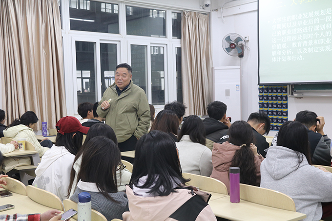 为明确学生职业发展路径、增强学生就业竞争力、加深对专业知识的理解并激发创新能力,管理学博士邵一明副教授通过分享自己丰富的经验,向学生们传授了宝贵的知识和见解。邵教授通过分析就业现状,帮助同学们更好地理解行业趋势和市场需求以适应当下职业发展环境。他从找准定位、提升能力、做到专业、敢于尝试四个方面鼓励同学们大胆尝试,挑战自我,提高自身优势。结合真实案例,邵教授建议同学们积极寻找自我发展的方向,加强专业知识学习,不断提升个人能力。此外,他还为同学们构建了一个系统、科学的职业生涯规划框架,帮助同学们成长为品学兼备的应用型人才。