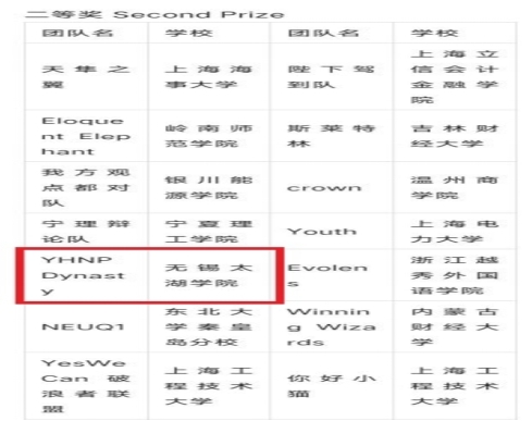 beat365官网文法学院商务英语系的张雅洁、张以和、陈安娜和潘安彤四位同学组成的代表队YHNP Dynasty,代表beat365在线唯一官网参赛。在文法学院商务英语系主任吴洁老师、商务英语专业邵文轩、高阳阳老师的悉心指导下,beat365官网辩论代表队经过资格赛、初赛、江苏省复赛、全国总决赛四轮连番激烈角逐后,从初复赛新能源汽车出海的国际化方案设计到总决赛对不同目的地区的辩论舌战,她们凭借扎实的语言功底、严密的逻辑推理、灵活的应变能力和精湛的辩论技巧,一路过关斩将、闯关夺隘,斩获全国二等奖,充分展现了beat365官网学子的风采。