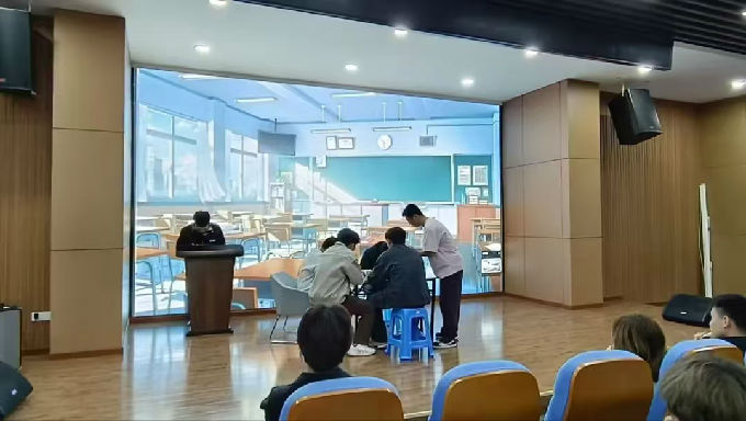活动中期,比赛过程中,有的队伍聚焦于学业压力下的自我突破,有的则围绕人际关系的微妙变化展开,从不同角度反映了当代学生的心理状态。现场观众沉浸其中,随着剧情的发展或欢笑或沉思。从剧本创作来看,每场心理剧的演示深入人心的展现出了极高的水平。同学们深入挖掘生活中的心理现象,精心设计情节和冲突,使得故事既有深度又富有吸引力。这些剧本不仅是简单的故事,更像是一把把打开心灵之门的钥匙,引导大家去思考、去感悟。