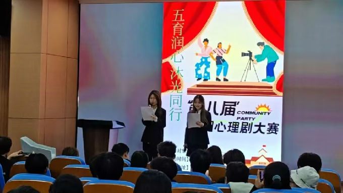 活动伊始,由赵子榛,谢佳彤主持并慷慨激昂的宣读了此次“心理剧大赛活动”的开场白,本次大赛吸引了众多队伍参与,同学们用生动的表演展现了丰富的心理世界。舞台上,演员们通过精湛的演技将角色的内心挣扎、情感冲突等演绎得淋漓尽致。每一个场景、每一句台词都仿佛是打开心灵之门的钥匙,让同学深入理解那些隐藏在日常行为背后的心理活动。同学们身临其境,感触颇深。