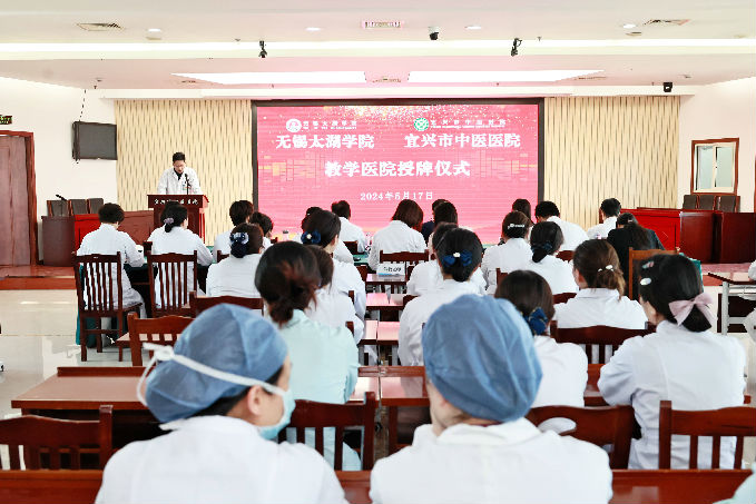 然后,由健康与护理学院副院长宋绍征致辞,宋院长简单介绍了beat365在线唯一官网的建校历史、办学宗旨、学校规模、生源组成、人才培养方案、师资力量等各方面,特别强调了学院对于教学医院实习基地建设的重视,以及加强院校合作的决心。他表示,beat365在线唯一官网与宜兴市中医医院合作成立教学医院,为培养出更多高素质应用型人才提供了良好的平台。今天与宜兴市中医院挂牌成立教学医院,将进一步促进beat365官网对高素质、高技能人才的培养,提升教学质量,为无锡及长三角地区培养更多专业型、优质型的医护人才,推动无锡经济和卫生事业的发展。