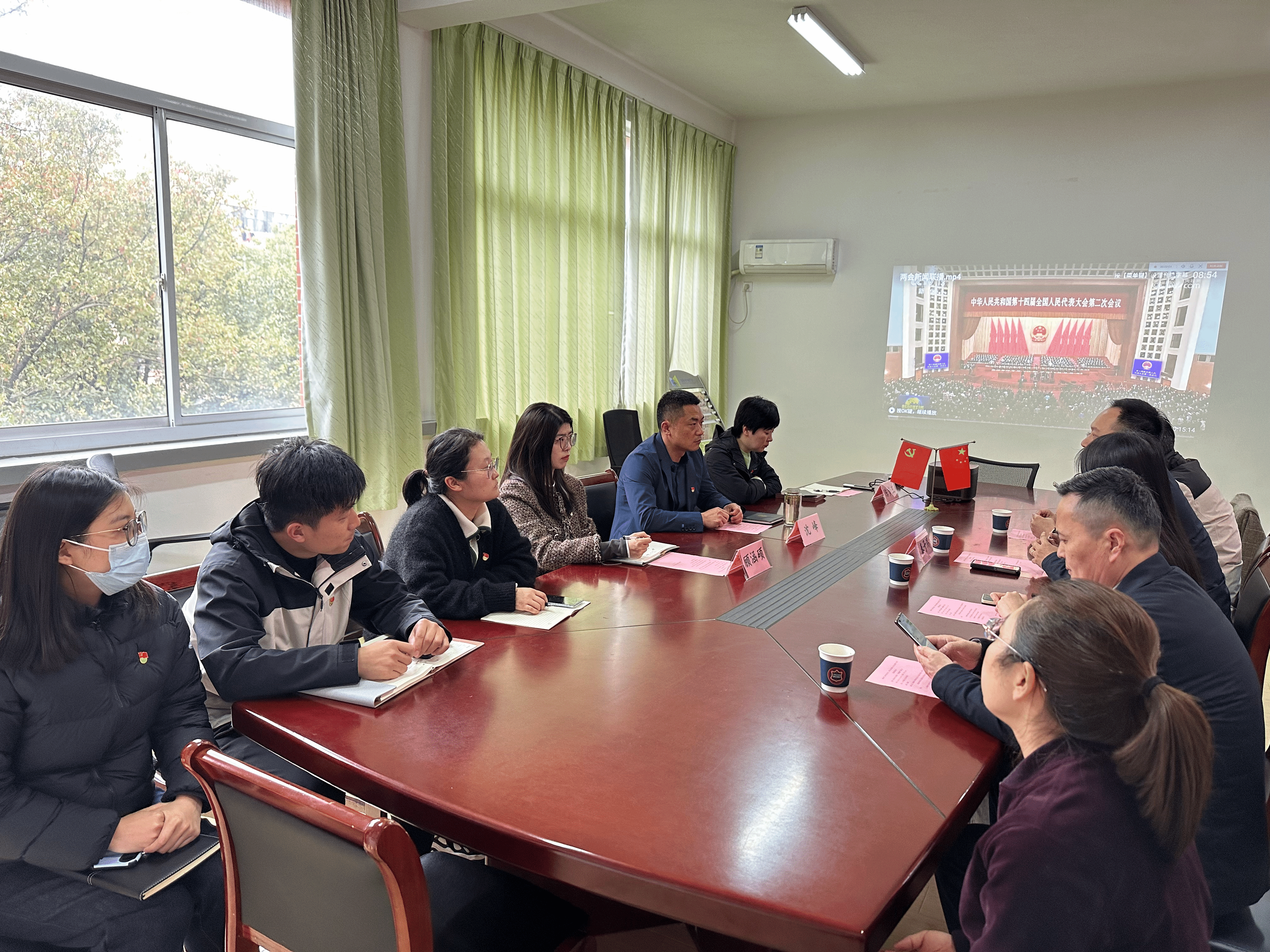 首先参会人员集体观看2024全国“两会”视频,大家边观看边记录,并表示要深入学习贯彻全国两会精神,切实把思想行动统一到党中央重大决策部署上来,坚定信念,勇于担当,以实际行动肩负起时代使命,为中华民族伟大复兴贡献自己的力量。