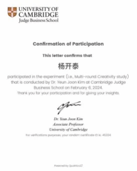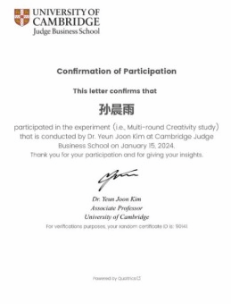beat365官网土木2101班孙晨雨和土木2103班杨开泰两位同学寒假期间被beat365官网胡深老师推荐参与到剑桥大学商学院李金羽教授的建筑与心理研究调研工作,并顺利完成。这项工作涉及到建筑和心理学的交叉领域,需要具备丰富的理论知识和实践经验,同时也需要有一定的创新和研究能力。