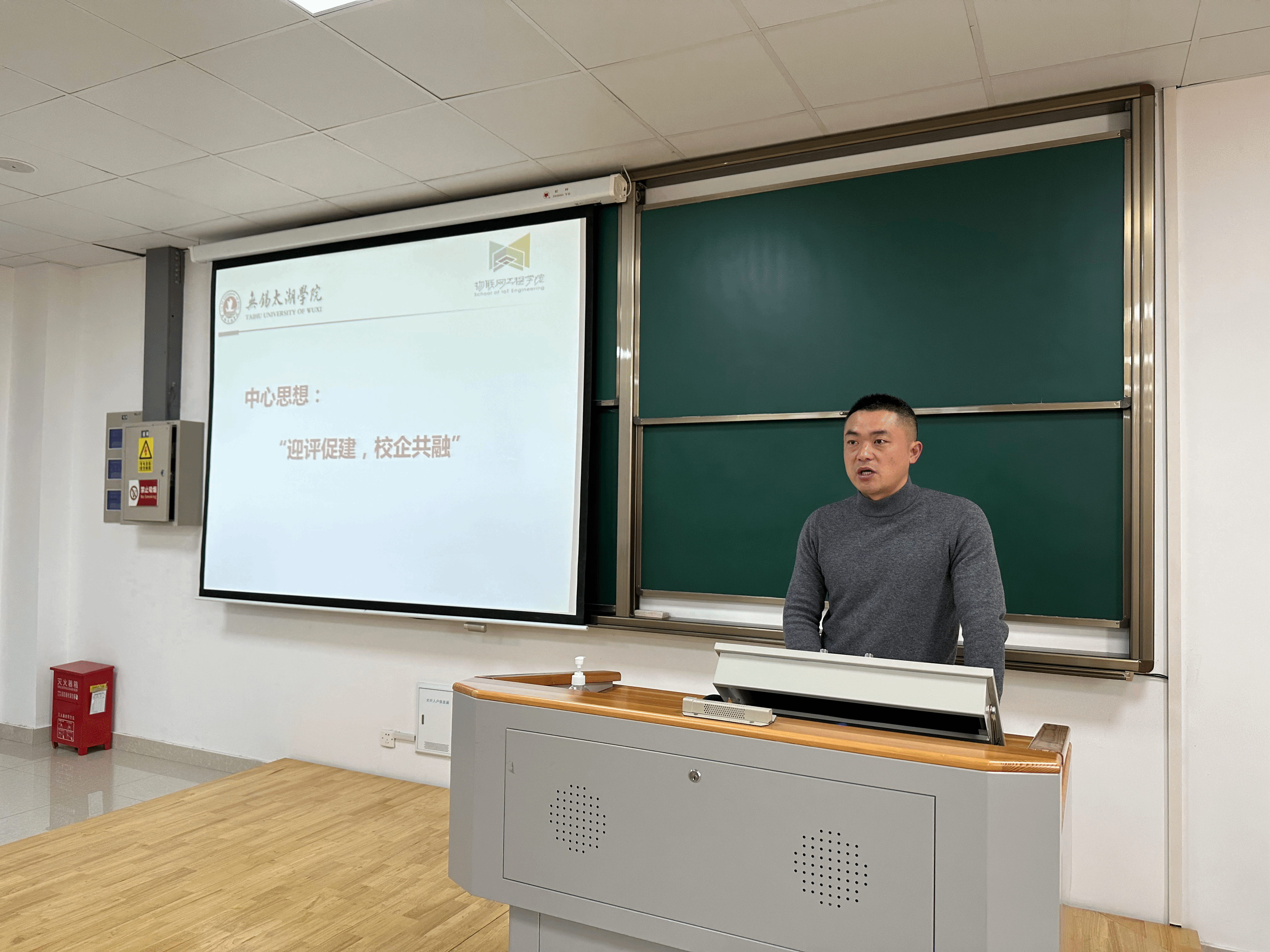 学院党总支副书记沈峰围绕“迎评促建、校企共融”的中心思想,从党团工作、学生工作方面进行了部署。首先他强调了党建工作的重要性,指出要加强意识形态建设,增强组织人员架构,提高政治站位,通过强化党的建设,引领学院高质量发展;随后就师德作风、学生发展、毕业生就业工作等提出了具体要求,切实有效的推进各项工作,落实落地。