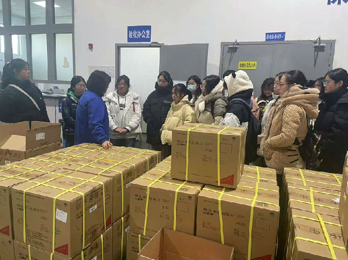 随后,为了进一步加深学生对企业生产内部情况的了解,企业负责人还带领同学们参观了医疗器械的工作车间与医药产品的运送流程,讲述了医疗器械与医药产品所对应的时间批次、放置的位置与顺序以及合作医院的对医疗器械的要求等专业知识,并对同学们提出的疑问耐心解答。