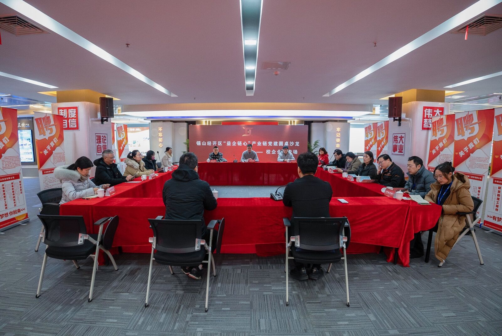 为拓宽学生就业渠道,深入推进校企合作,2023年12月21日,物联网工程学院党总支副书记沈峰带领学院相关人员参加了锡山经济技术开发区党工委举办 “红链锡开”产业链党建圆桌沙龙暨“游学锡开”实践活动。