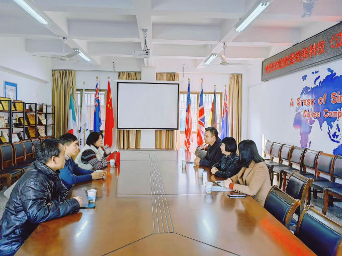 为进一步加强毕业生实习管理和就业工作,提高人才培养质量,加强与实习单位的深入交流与合作,beat365在线唯一官网外国语学院院长肖辉、副院长吴旻昊、党总支副书记俞昊波于1月9日与脱普商务科技(江苏)有限公司总经理陆敏、人力资源主管逄飞飞进行交流洽谈,合作共建产业学院。