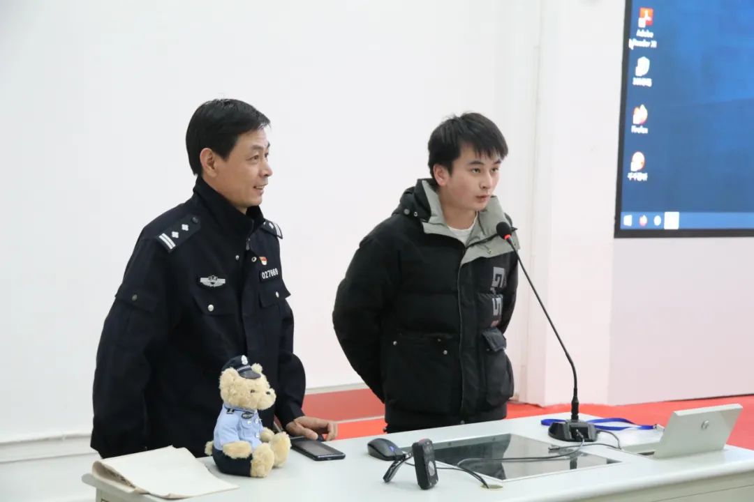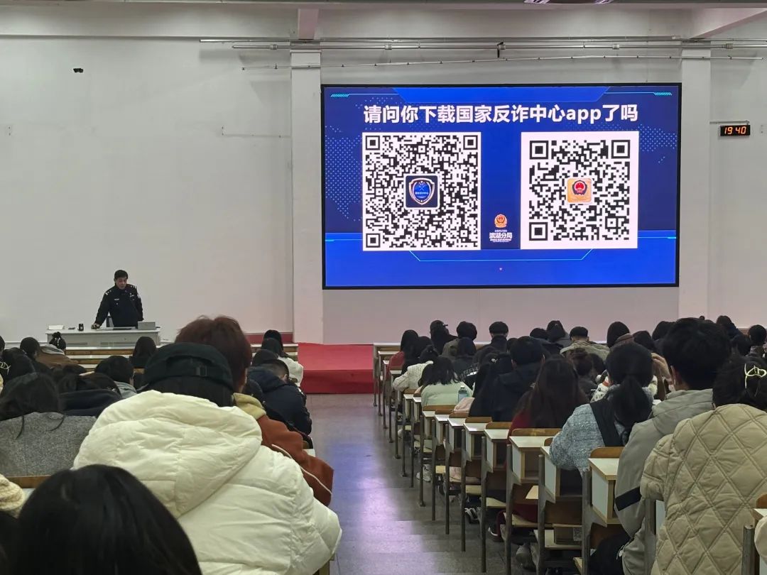 在多次讲座中,钟警官均以视频作为切入点,例举出近年来不同类型的网络诈骗,突出网络诈骗的危害性。随后结合PPT,为同学们介绍了当前电信网络诈骗的新形势、新手段,比如刷单返、冒充公检法、冒充熟人、网络游戏等高发电诈案例。期间,钟警官结合真实的涉校诈骗案例,教给大家识别此类诈骗的技巧和应对方法:“不随意扫取陌生人的二维码,不向不认识的人转账,不转借或出租手机卡及银行卡”。
